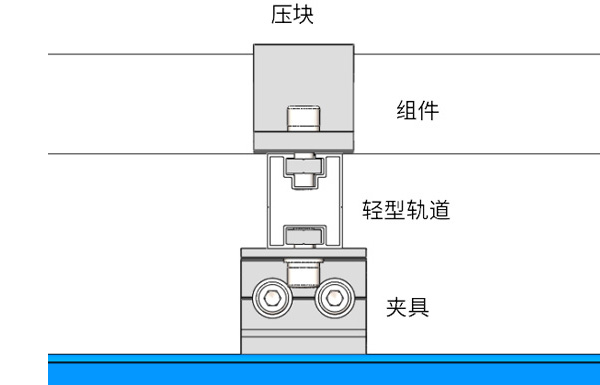 1、如果輕型軌道無法滑入夾具內(nèi)的鋁滑塊,則移動(dòng)一下夾具,使單元內(nèi)的夾具保持在同一直線上。 2.如果輕型軌道的長度不夠,請(qǐng)根據(jù)方案使用輕型軌道連接件把多根輕型軌道連接在一起。如圖5